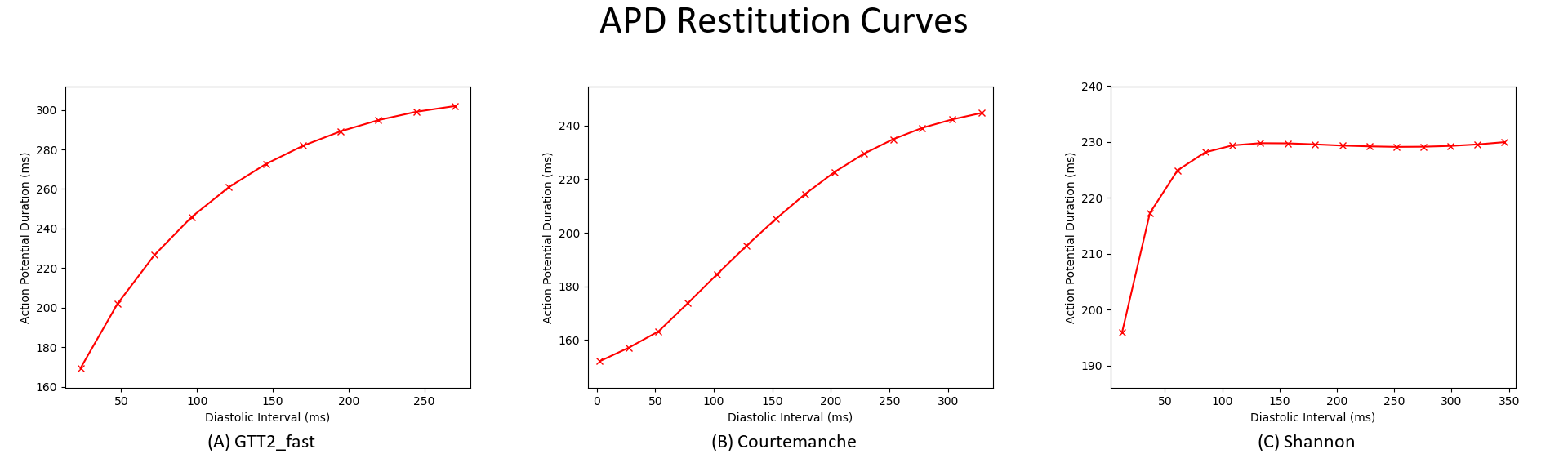 Single-cell models are paced with 2-ms-long stimuli at twice capture amplitude with all restitution protocols.