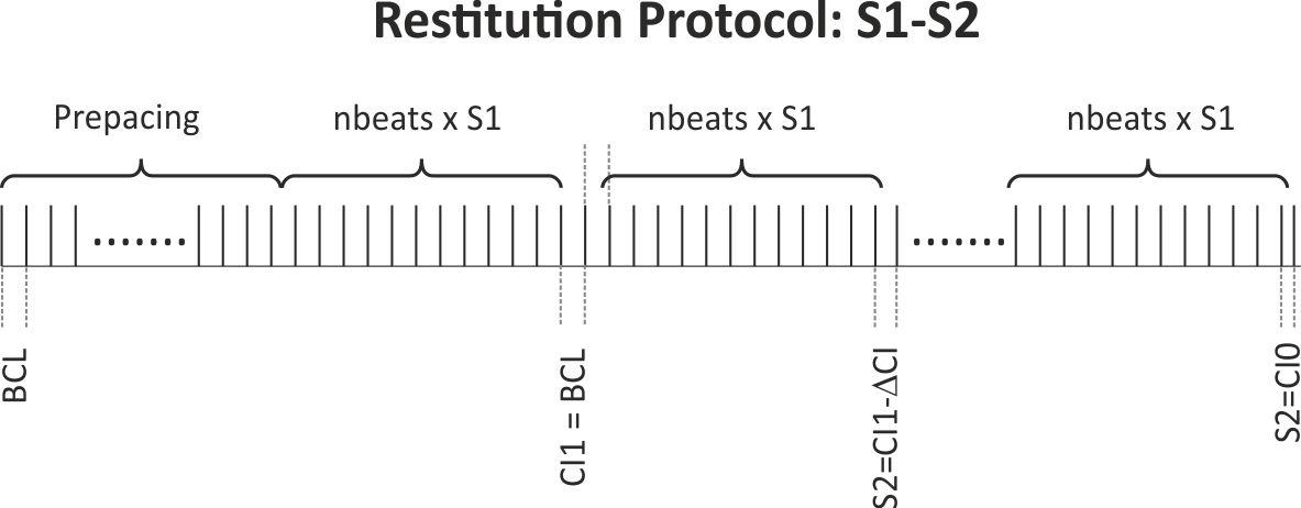 For an S1S2 pacing protocol, the user sets the basic cycle length (BCL) and number of beats, nbeats, for the S1 pacing.