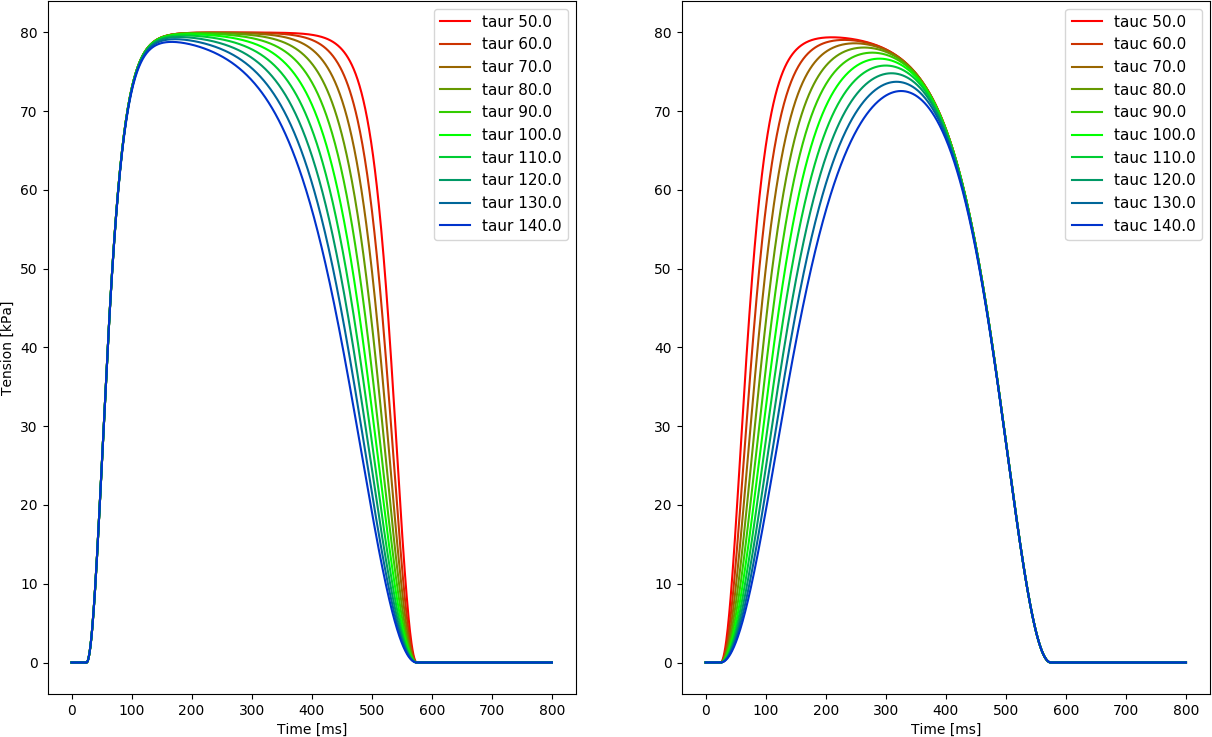 parameters of the LN model were adapted to give human myocardium tension transients